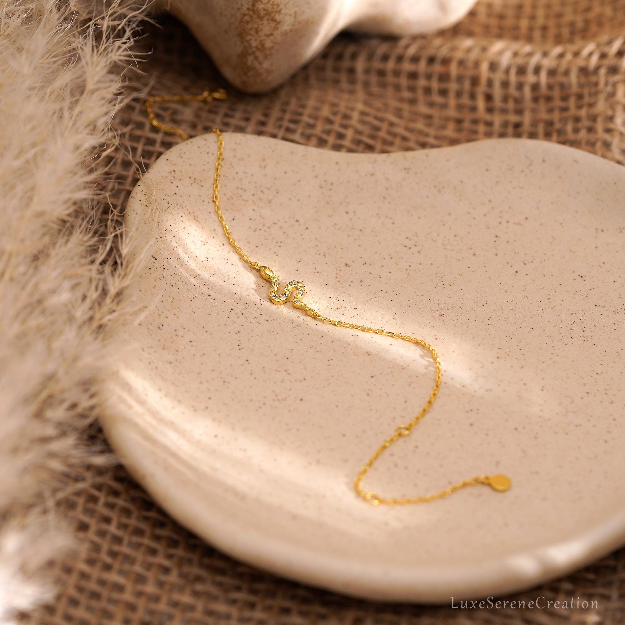 18K Gold Snake Bracelets, Snake Diamond Bracelet, Delicate Snake Bracelet for Mom, Mini Snake Gift, Unique Gift for Her, Mother’s Day Gifts